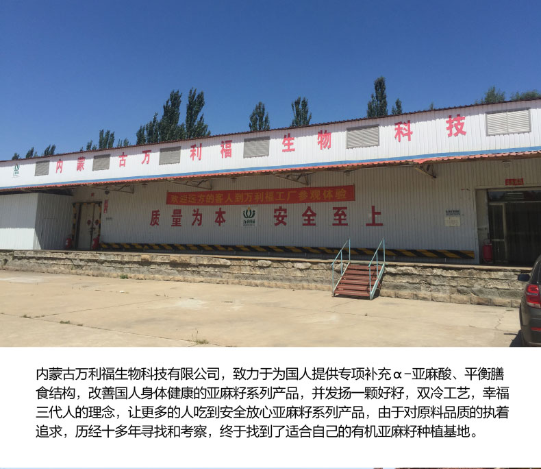 2019年5月6日,由內蒙古萬利福生物科技有限公司在京東眾籌平臺發起的電商助力,精準扶貧項目眾籌結束,眾籌結果達成132%,公司致力于為國人提供專項補充α-亞麻酸、平衡膳食結構,改善國人身體健康的亞麻籽系列產品,并發揚“一顆好籽,雙冷工藝,幸福三代人的理念,讓更多的人吃到安全放心的亞麻籽系列產品。