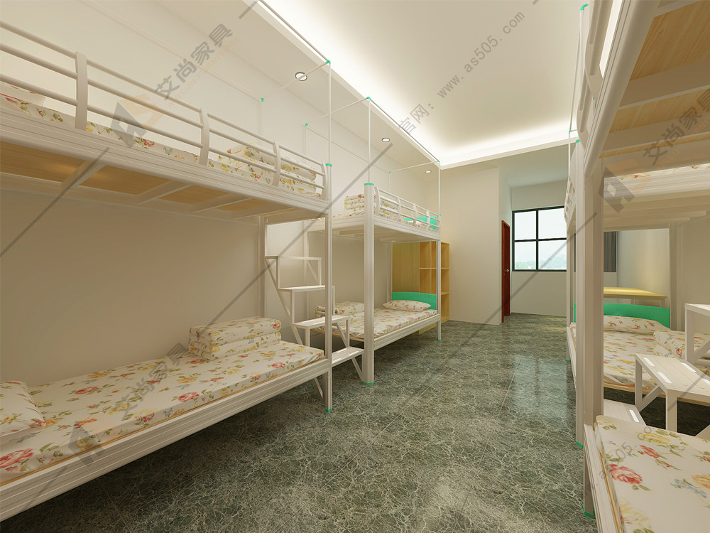 艾尚家具這款宿舍家具床材質全部采用冷軋鋼板壓鑄而成的中控異型材,床體采用卡扣式連接,經過酸洗磷化、高溫烤漆不易生銹,后期也沒有異味,全圍護欄,無螺絲,全拆裝。衣柜里面可以把衣服疊起來放著也可以掛起來。