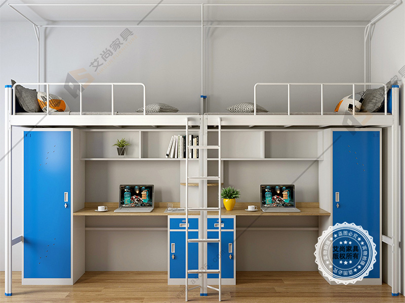 艾尚家具采用卡扣式的公寓床使得床在使用的時候靜音與結實,加厚橫梁設計,加高至235mm的護欄,樓梯滑紋設計,多細節多方面調整公寓床品質。橫梁、立柱采用1.2mm厚冷軋鋼軋制成型,卡扣連接處選用2.0mm厚冷軋鋼沖壓成型。