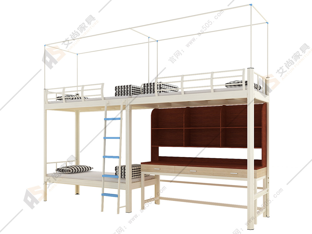 艾尚家具AS-G20這款公寓床,原材料采用的是冷軋鋼板,可以很好的保證床的承重性。鐵床樓梯有很多款式可以支持定做,有側梯,內梯,踏板式的。客戶也可以根據自己喜歡的搭配進行定制。顏色方面也是可以按照客戶的喜好進行噴塑。我們的樓梯踏板都是設計有防滑紋的,謹防雙腳打滑。