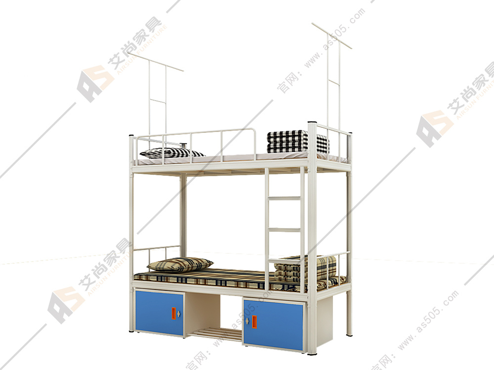 接下來小編給大家介紹一下啊,這款上下鋪鐵床是艾尚家具今年新推出的,型號:AS-S03,尺寸:1980*900*1800,這款床的設計雖然看似簡單,其實包含著我們許多的細心,我們特地設計全圍護欄,就怕顧客因為翻身而摔下來,樓梯我們采用的是直梯,樓梯上面也有防滑紋,腳濕踩上去不會打滑的哦。