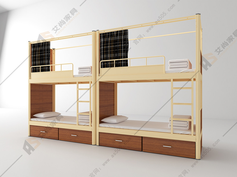 這款是艾尚家具型號為AS-S04的一款雙層床,2530*900*1800,這款床的材質采用的是冷軋鋼板,厚度為1.2mm不易生銹。爬梯采用防滑式爬梯,接觸地面均有防滑塑膠套。結構穩固,組裝方便鏈接方式為卡式鏈接,可以自由拆裝,節約空間