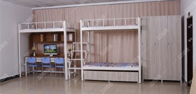 還可以選擇塑膠擋板,在上鋪再也不擔心掉小物品;防滑紋的樓梯腳踏板,防滑,還有夜光踏板,晚上也可以清楚看到。上述我說的是常規的宿舍家具雙層鐵床,艾尚宿舍家具還可以再方便一點,不僅有雙層鐵床,還有公寓床,很多的配套產品。