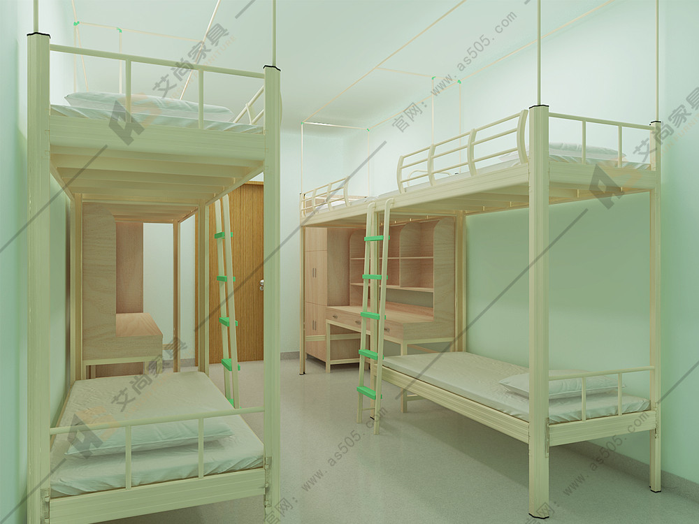 艾尚家具這款AS-01的梅州兩人雙層鐵床,整張床看起來都是整潔美觀的,原材料是采用冷軋鋼板,保證了床的承重性(可承重500公斤),艾尚家具也有配置床的吊柜,椅子,衣柜等可供客戶自行搭配,需要什么就選擇什么。而且,我們公司也可以為客戶免費提供宿舍整體解決方案!