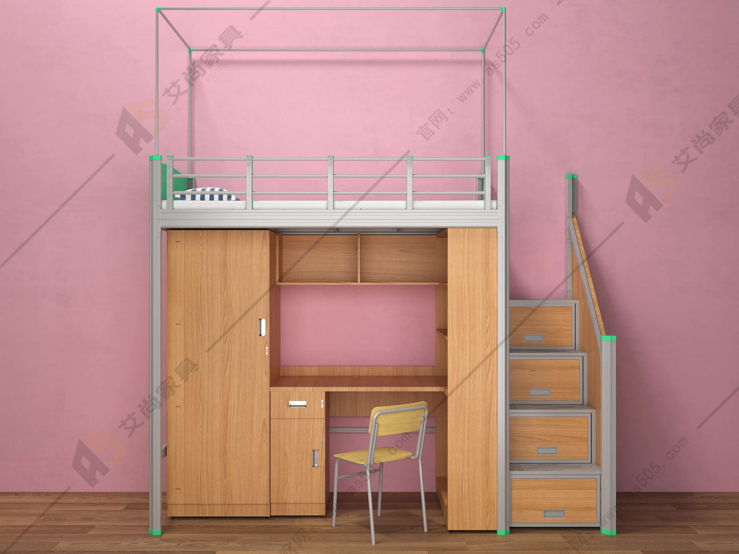 上方床下方桌帶衣柜的組合式公寓床,常見的就是單體、二連和三連這三種款式的,分別通常運(yùn)用于4人間和6人間宿舍。這類學(xué)生宿舍公寓床的優(yōu)點(diǎn)在于儲(chǔ)物空間和學(xué)習(xí)空間較大,而且每個(gè)學(xué)生之間的隱私性相對(duì)更好,拉個(gè)簾子甚至幾個(gè)小空間互不干擾。也是目前高校選購(gòu)的主流宿舍床。