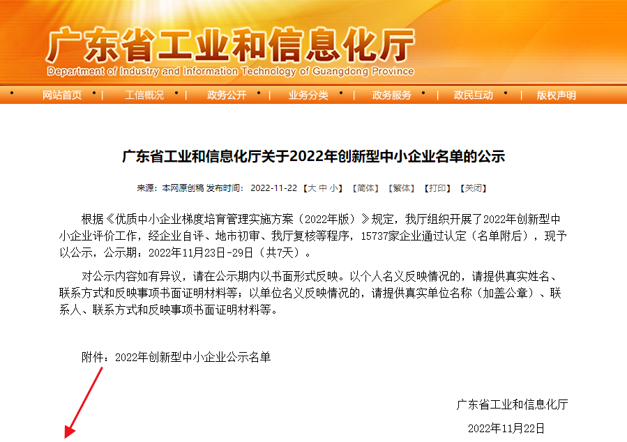 近日廣東省工業(yè)和信息化廳關于 2022 年創(chuàng)新型中小企業(yè)名單公示,廣東艾尚家具有限公司成功入選!