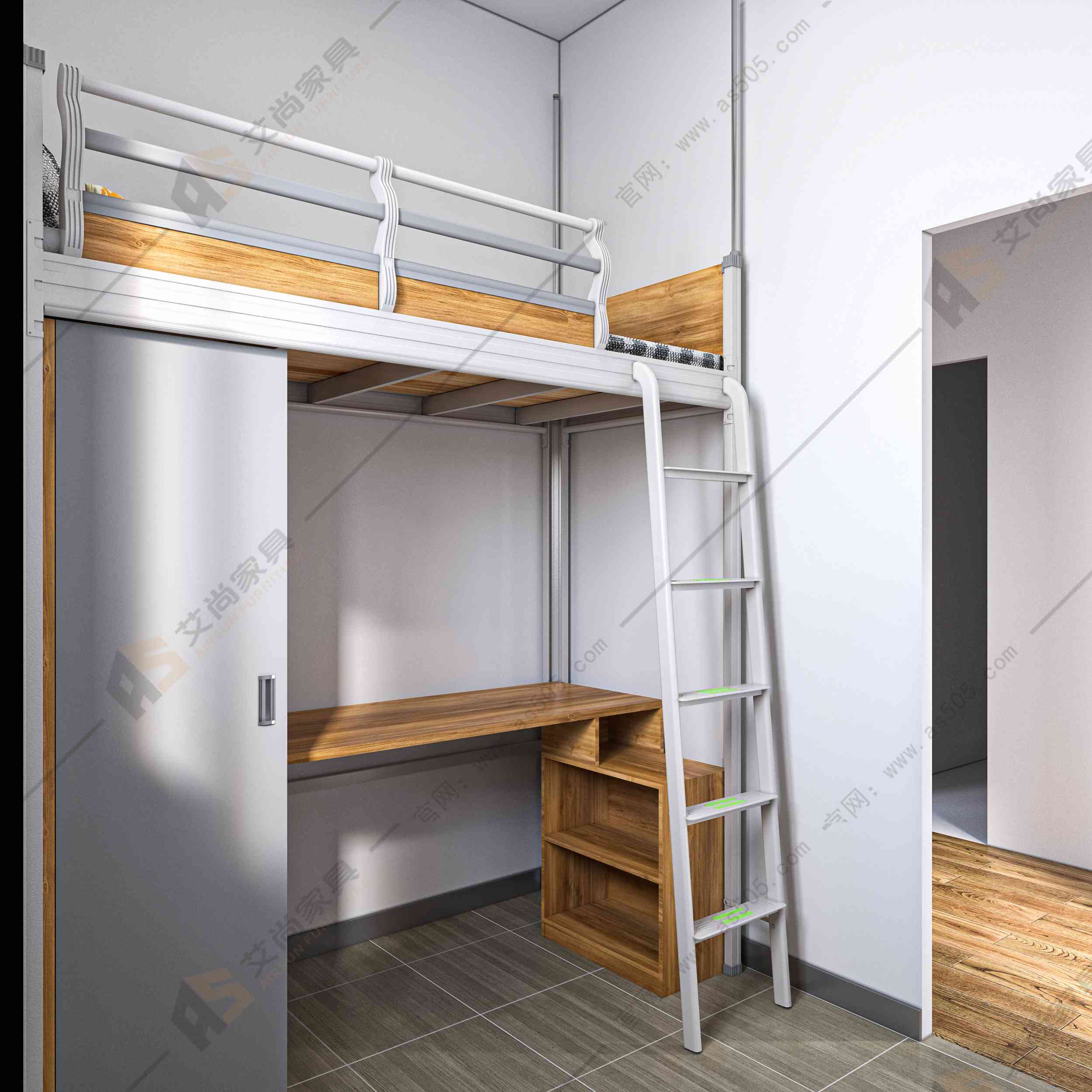 我們生產的組合公寓床除了安裝方便之外,質量也是一大賣點,立柱采用中空異性的結構,原材料鋼板,經酸洗lin化及噴涂之后厚度達到1.2mm以上,并配有加強筋,穩固結實。而且卡扣式的結構避免了之前螺絲連接因長時間受壓螺絲變形產生的床體晃動和異響。此外,為了保證使用者的人身安穩,艾尚家具宿舍公寓床的防護欄高度大于25厘米。