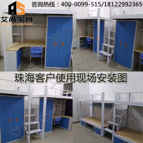 公寓床系列可以靈活多變,備有多款色彩可供選擇,配有不同配件,如底資料柜、邊桌、抽屜柜、書柜,可塑造出不同類型的學習與休息環境。一般的外形尺寸是1980*900*2080mm,是由床、書柜、衣柜、書桌和梯架組成。書柜和衣柜連接在床架床腿內側,書桌將書柜、衣柜連在一起,床架有書柜的一頭安裝有梯架,床架的另一頭與梯架同側有護欄,書桌的桌面下有鍵盤支架和抽屜架。由于床是立體空間組合,不僅節省了空間,而且整齊美觀,又便于管理。