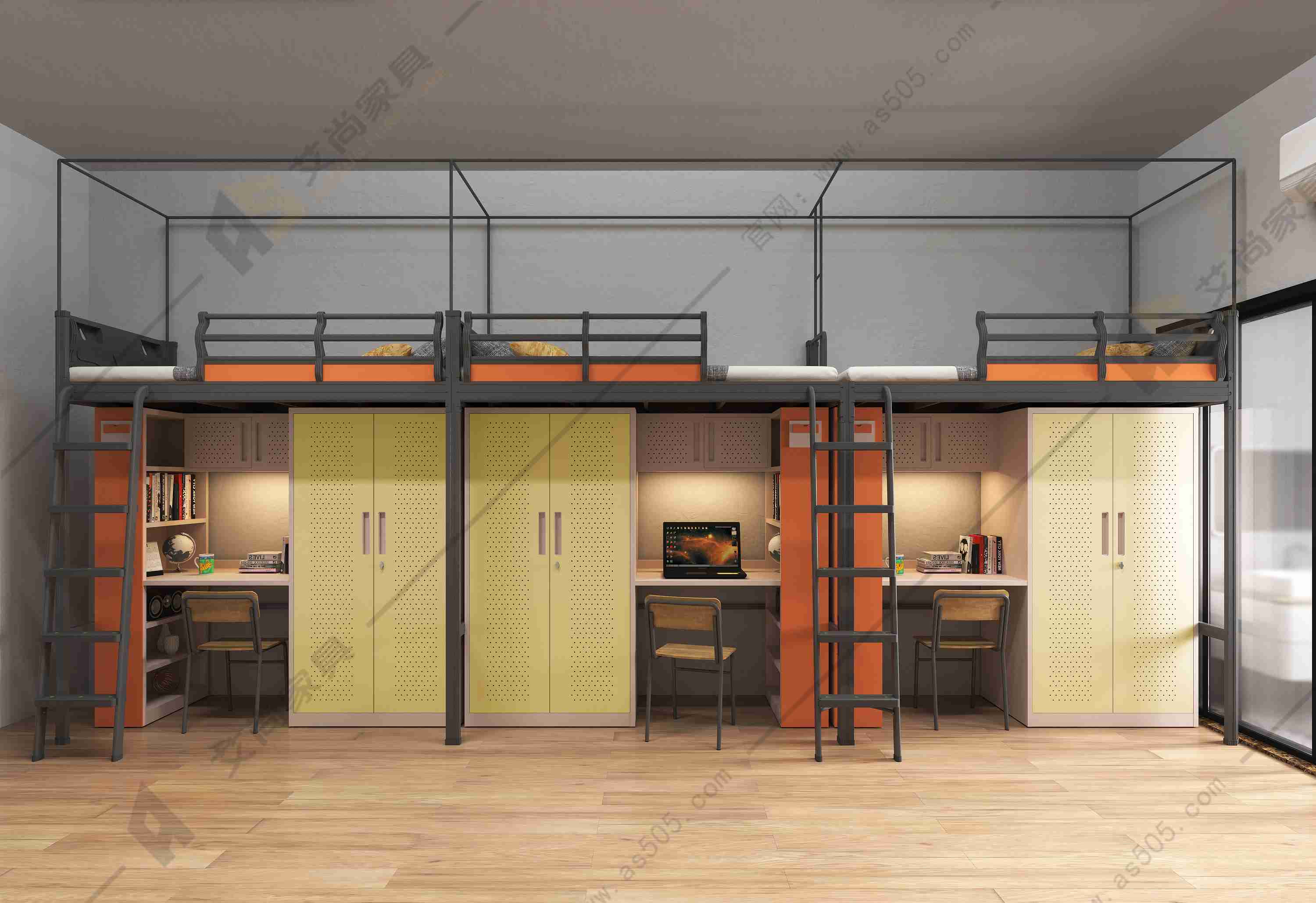 學生宿舍公寓床整體體積較大,特別是傳統公寓床,采用床架整體焊接,占地面積大,運輸成本高。艾尚公寓床整體采用卡扣式設計,常規款運輸只占0.15個方,安裝只需三分鐘,艾尚工廠直接發貨。并且卡扣式結構銜接部分會因重力向下,學生宿舍公寓床銜接的會越發緊密,堅固耐用,后期也沒有螺絲釘生銹松動的困擾。
