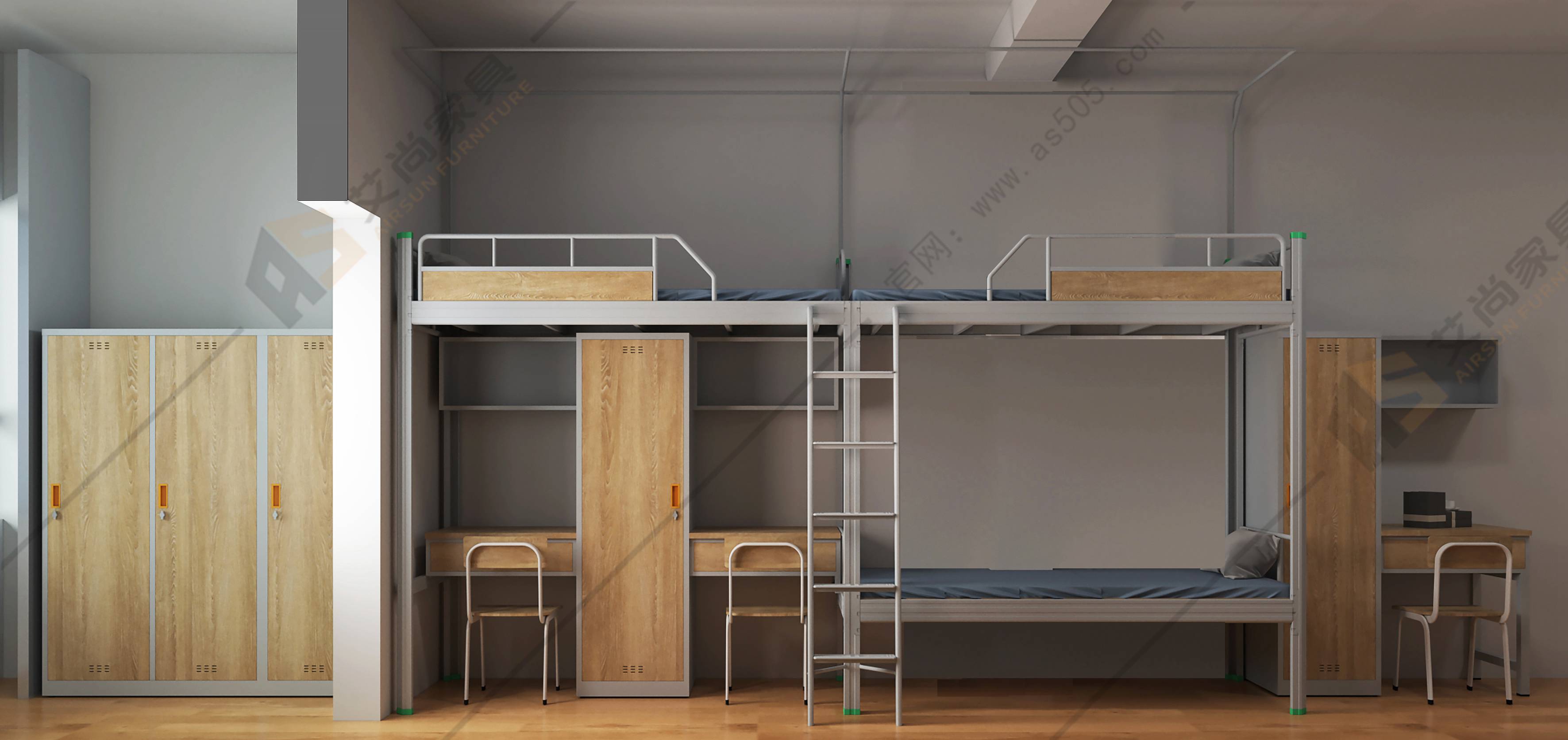 艾尚家具員工宿舍床是無螺絲的卡扣式連接的,設計以簡為主,卡扣式結構更美觀。還配有配套產品、書柜、鞋柜、衣柜、書桌等。衣柜是由鋼和木頭制成的,環(huán)保耐用無異味,讓生活更加便捷。