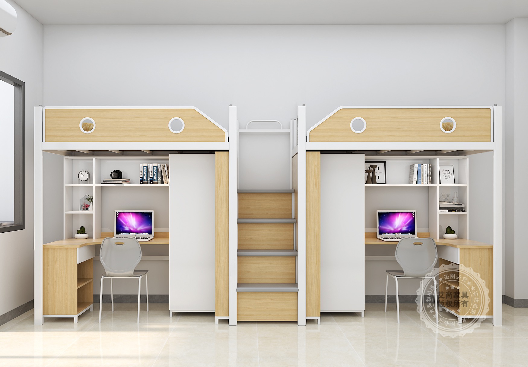 宿舍空間有限,但需求無限!定制服務可以根據宿舍的實際尺寸,靈活設計床的長、寬、高和結構。比如,艾尚家具的上床下桌一體床、兩連體床,不僅能節省空間,還能為學生打造專屬的學習區和儲物區,瞬間讓宿舍變得寬敞又整潔!