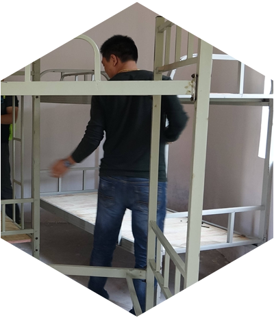 2、普通公寓床:原材料選用一般的方管員工,承重力不夠,易搖晃松動,產品質量難以保證。