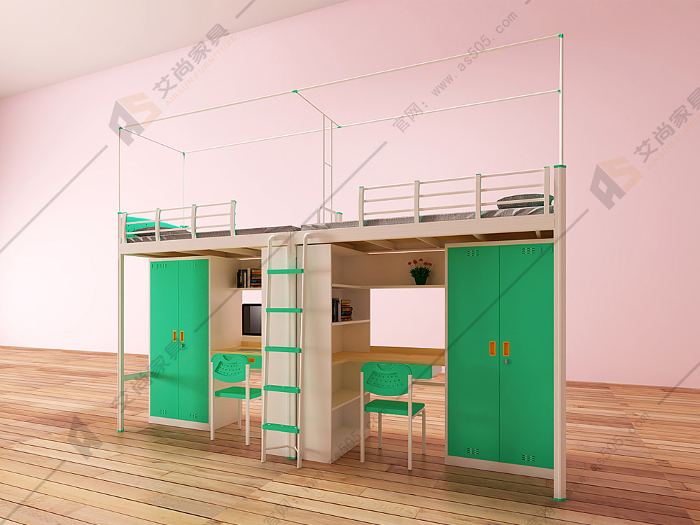 學生公寓鐵架床;原料使用冷軋鋼板;其立柱、橫梁等主體材質,為中空異形材。中空異形材是一種開口管材。這樣做的目的是因為開口的可以達到內外噴涂,防止腐蝕生銹。結構為倒掛式卡扣連接,這樣可以紙箱包裝,節省空間運輸。倒掛式的長時間經過從上往下的受力,只會越壓越緊,不會出現長時間松動的情況。