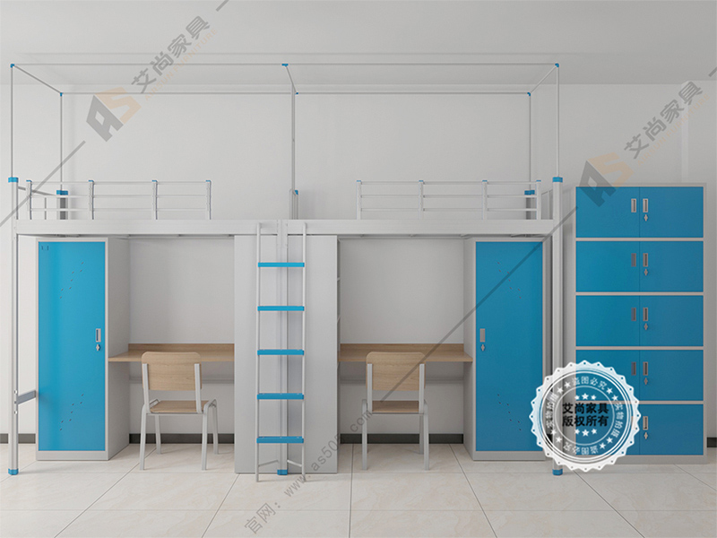 產品介紹: 兩連體側梯公寓雙層床,常規尺寸3930長*900寬*2100高mm(尺寸可根據客戶要求定制),本產品顏色使用藍色、灰色(顏色可按照客戶喜好定制),原材料使用1.2mm冷軋鋼板,產品采用紙箱包裝防止運輸途中磨損,產品適用范圍企業、單位、學校4-6人間宿舍均可適用。 本產品廠家質保十年!