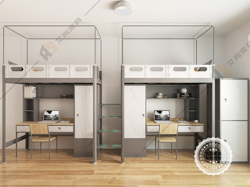 產品介紹: 艾尚家具湘潭公寓床外觀上高端大氣,并且安全舒適。湘潭公寓床采用環保0甲醛烤漆,無論悶熱潮濕都恍然如新。 做工設計上,湘潭公寓床采用卡口式連接,這種連接的優點在于承重性強,穩固性好,上床時非常平穩,不易搖晃,安全舒適,可以適應各種宿舍。